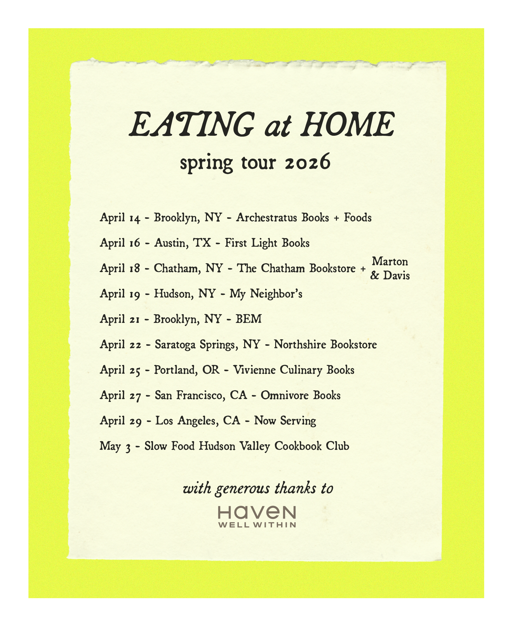 APRIL 27: SAN FRANCISCO, CA @ OMNIVORE BOOKS IN CONVERSATION WITH LAUREN HAYNES (DETAILS)